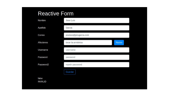 - seguimiento automático del formulario y sus datos (manejado por Angular)